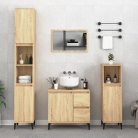 $118.10This stylish bathroom furniture set, featuring spacious storage space, is an excellent addition to your bathroom, giving it a tidy and striking appearance! Durable material: The engineered wood is of exceptional quality with a smooth surface and features strength, stability and resistance to moisture.Ample storage space: The bathroom sink cabinet offers ample storage space for keeping your bathroom supplies well organised.Metal feet: The metal feet add a modern and calm style to your interior while ensuring stability.Practical mirror: Use the included mirror to neat your daily dressing. It also adds an excellent appearance to your home decor.Easy-to-clean surface: The bathroom vanity unit is easy to clean with a damp cloth. Warning:To prevent it being overturned, this product must be used with the provided wall attachment device. Good to know:Screws and plugs for inside the wall are not included. We advise to find and use screws and plugs suitable specifically for your walls. If you're not sure, you can consult with a professional. Please read and follow each step of the instructions.