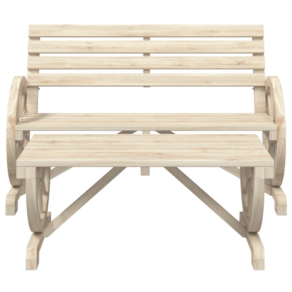$255.59This wooden garden lounge set has an elegant design and is a great choice for relaxing and enjoying in the garden or patio. Solid fir wood: Solid fir wood is a beautiful and durable material that maintains its integrity even when exposed to moisture. It does not dry out or warp, making it a reliable choice.Comfortable seating: The garden lounge chair features an ergonomic seat and angled backrest for optimal seating comfort. Additionally, the wagon-wheel shaped armrests provide comfortable space to rest your arms.Practical table: The coffee table is perfect for placing your drinks, food and other decorative items. Good to know:To make sure your outdoor furniture stays beautiful, we recommend protecting it with a waterproof cover.
