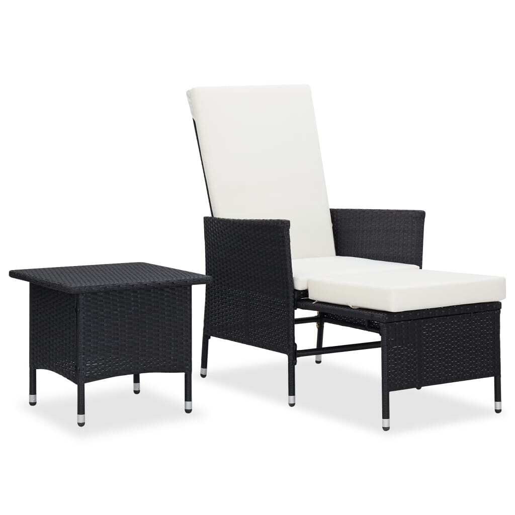 $120.59This trendy garden furniture set provides optimal seating comfort whenever you want to enjoy the fine weather and relax in the garden or patio. The armchair and tea table, made of PE rattan, are hard-wearing, easy to clean, and suitable for daily outdoor use. This outdoor lounge set is supported by a powder-coated steel frame, sturdy and stable for years of relaxation. The thickly padded cushions provide a comfortable seating experience. You can relax with added comfort, thanks to the built-in footrest. The included table is ideal for keeping fruit bowls, drinks, food and other decorative items within reach. Note: We recommended covering the set in the rain, snow and frost for prolonged life.