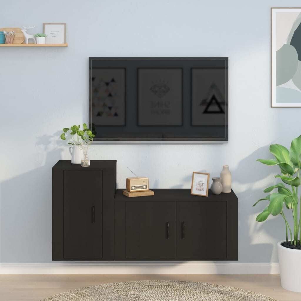 $141.31This classic TV cabinet set is designed to be a focal point of your room, featuring a trendy yet practical design. Sturdy material: The engineered wood is of exceptional quality with smooth surface and also features strength, stability and resistance to moisture.Ample storage space: The TV stand set provides ample storage space to keep all your magazines, DVDs and any other items well organised.Wall-mounted design: The TV unit doesn't take any floor space. You can hang it on the wall easily. Good to know:To make assembly as easy as possible, each product is delivered with a manual.Screws and plugs for inside the wall are not included. We advise to find and use screws and plugs suitable specifically for your walls. If you're not sure, you can consult with a professional. Please read and follow each step of the instructions.