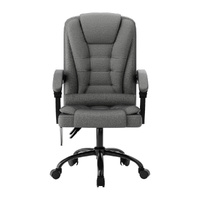 $125.54You don't have to wait until the end of a long workday to get a relaxing massage. You can have it all with the Artiss Massage Office Chair. As you sit in the high-back premium fabric seat, you can bring on a soothing two-zone vibration massage aimed at your upper and lower back. An S-shape contoured backrest, tension tilt adjustment, and padded headrest and armrests all work in tandem to cup your body in complete luxury. The backrest can be adjusted and locked at four different angles to suit any activity, such as working, reading, viewing videos or just resting. Let the massage chair do its magic to relieve back tension, soothe aching muscles and provide all-round comfort. The chair is also 10cm height adjustable, 360 degrees rotatable and comes with five dual-wheel castors for easy mobility. Take the stress out of your work with our Massage Office Chair. Rest assured, every workday will be a comfortable one.