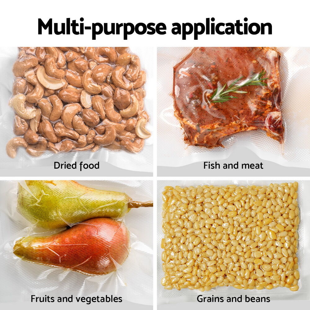 $21.59These two rolls of food vacuum sealer bags are perfect for keeping your food fresh for longer! The bags are designed to prevent spoilage by extracting all the air from inside the bag. Made from safe and odourless materials, these bags are tough and not easy to tear. The multi-layer bag design ensures maximum air extraction and is suitable for fruits, meat, cereals, vegetables, and more. The bags are compatible with most vacuum sealer machines, ensuring a strong seal and no air leakage. The diamond-shaped embossing makes them resistant to high temperatures, and they can be refrigerated and frozen. However, they cannot be heated in the microwave; only slowly heat the bags in water. The temperature range for use is -40 to 90 Celsius degrees. Reduce your food waste and keep your fridge stocked with our vacuum food sealer bags.