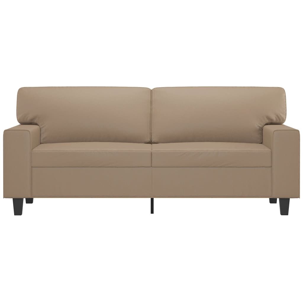 NOW $385.01This 2-seater sofa is an excellent place for chatting, reading, watching TV or just relaxing. It is meant to be a focal point in your home. Durable faux leather: Premium faux leather is a highly durable material. It is resistant to stain, making it easy to clean with a damp cloth. The smooth surface also gives a luxurious look and the beauty of real leather.Sturdy and stable frame: The metal frame of the upholstered sofa ensures sturdiness and stability.Comfortable seat experience: The sofa is highly comfortable with the thickly padded seats, armrests and back pillows.Eye-catching design: Featuring a simple yet modern design, this couch is meant to be an eye-catcher in your room.