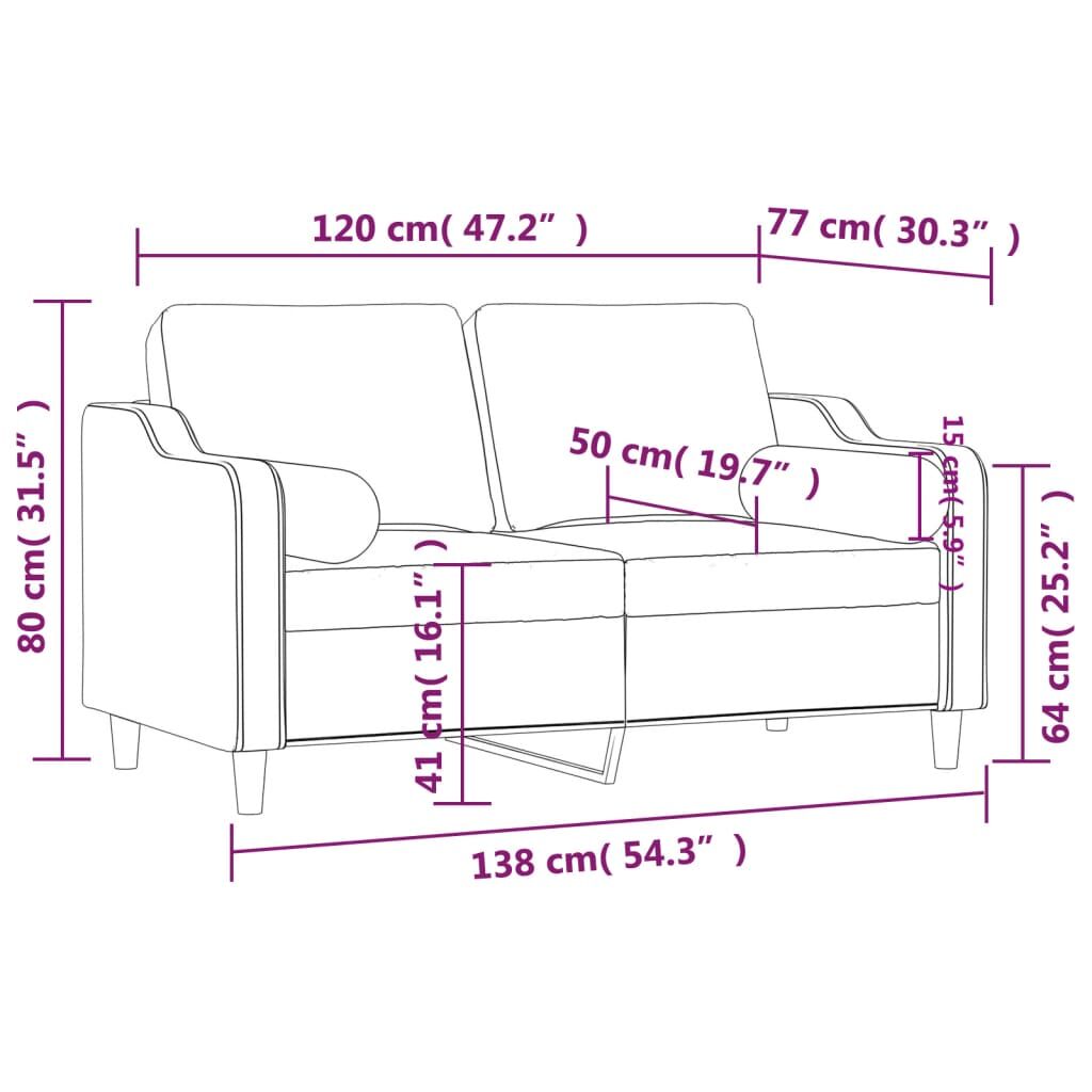 This 2-seater sofa, standing out with its modern design and throw pillows, will be an excellent place for chatting, watching TV or just relaxing. Durable fabric: The fabric features a simple and clean look while remaining breathable and long-lasting.Sturdy and stable frame: The metal frame of the lounge sofa ensures sturdiness and stability.Removable pillow covers: Thanks to the zip closure, the covers of these bolster pillows are easy to remove and clean when needed.Comfortable seat experience: The sofa is highly comfortable with the thickly padded seats, armrests and back pillows. Besides, the decorative pillows can add extra comfort when you are seated or lying.