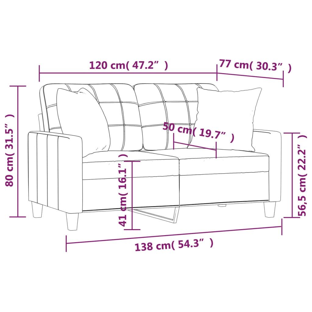 This 2-seater sofa, standing out with its modern design and throw pillows, will be an excellent place for chatting, watching TV or just relaxing. Durable faux leather: Premium faux leather is a highly durable material. It is resistant to stain, making it easy to clean with a damp cloth. The smooth surface also gives a luxurious look and the beauty of real leather.Sturdy and stable frame: The metal frame of the lounge sofa ensures sturdiness and stability.Throw pillows with inserts: These throw pillows come with PP cotton inserts, so you don't bother to buy fillings.Comfortable seat experience: The sofa is highly comfortable with the thickly padded seats, armrests and back pillows. Besides, the decorative pillows can add extra comfort when you are seated or lying.