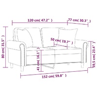 $351.89This 2-seater sofa, standing out with its modern design and throw pillows, will be an excellent place for chatting, watching TV or just relaxing. Soft velvet: Velvet is a soft, luxurious fabric that is recognised by its dense pile of evenly cut fibres that have a smooth nap. Velvet fabric features a distinctively soft feel, making it pleasant to touch.Sturdy and stable frame: The metal frame of the lounge sofa ensures sturdiness and stability.Throw pillows with inserts: These sofa pillows come with PP cotton inserts, so you don't bother to buy fillings.Comfortable seat experience: The sofa is highly comfortable with the thickly padded seats, armrests and back pillows. Besides, the decorative pillows can add extra comfort when you are seated or lying.