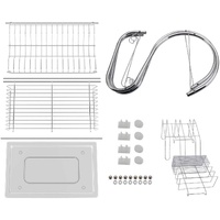 1 x 2 Tier Dish Rack with Drain Board for Kitchen Counter and Plated Chrome Dish Dryer Silver 42 x 25.5 x 38cm