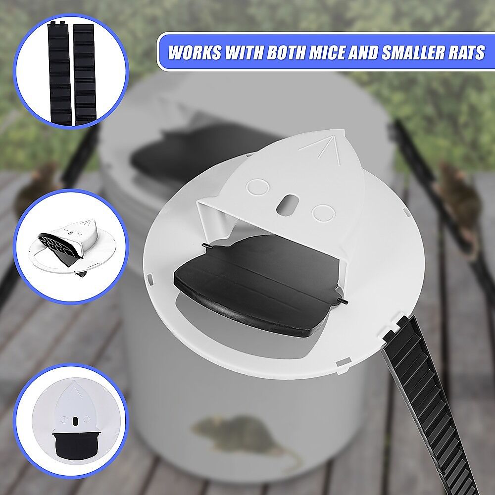 $40.84Mice are adorable in cartoons, but when it comes to your home or business, they're trouble in a tiny package. With these flip-and-slide mousetraps by Randy Travis Machinery, you can catch the little creatures without the cruelty of glue and snap traps. Just put some irresistible treats on the lid, toss some birdseed inside of a five-gallon (18.9-litre) bucket, snap the lid on top of the bucket, and install the trap along a path on which the mice travel. Then, all you have to do is relax while the unsuspecting mice drop into the bucket. In the morning, simply take the bucket outside and release the mice into the wild.