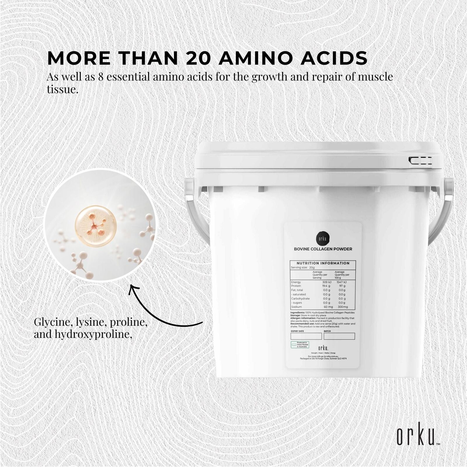 Plus, extra collagen has benefits beyond the skin that can benefit your joints, muscles, and nails. It contains more than 20 amino acids, mostly glycine, lysine, proline, and hydroxyproline, as well as 8 essential amino acids for the growth and repair of muscle tissue.