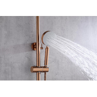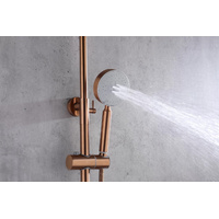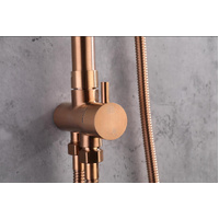 Includes: 1: Solid Stainless steel overhead, head 200 mm with hand-held shower head with multi-function, 1.5-meter hose, and integrated diverter Brushed Rose Gold Copper Color 2: Inlet elbow with a flexible hose, so you can put the inlet socket anywhere, easy to install and retrofit. 3:wall mixer not included Latest and trendy Burnished Brass gold/ brushed rose gold / matte black/gunmetal finish are also avaliable. This listing is for Brushed Copper shower head Model Name: JD-H89WELS Registration Number: S09988WELS 3 Star 8.5 L /Min