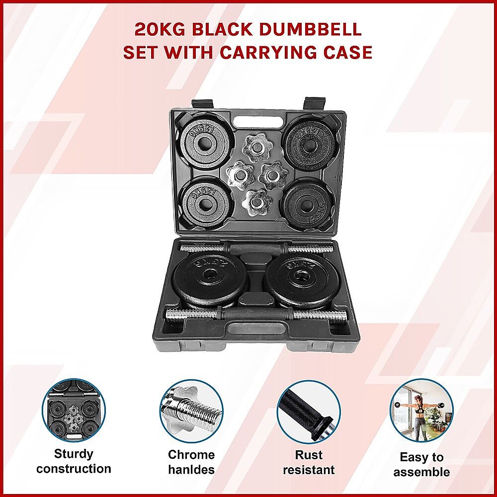 The gym is overrated! Take part of the gym with you with the 20 kgs Black Dumbbell Set with Carrying Case.