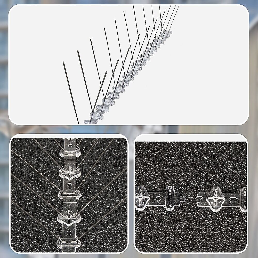 These slim, flexible rods sit in a base at an angle. They're not sharp, but they keep the birds' feet from gaining a foothold on your building because the spikes are too flexible for a bird to achieve a comfortably flat resting place. They're easy to clean and maintain. Simply pull out any debris, such as leaves, that accumulates as the weather changes. And, they're easy to install, making them cost-effective since you'll never need to call a professional installer. They're crafted from durable stainless steel on a tough polypropylene base, so they'll last for years to come. Don't wait for the birds to arrive this spring. Get prepared now with a set of these spikes!