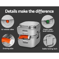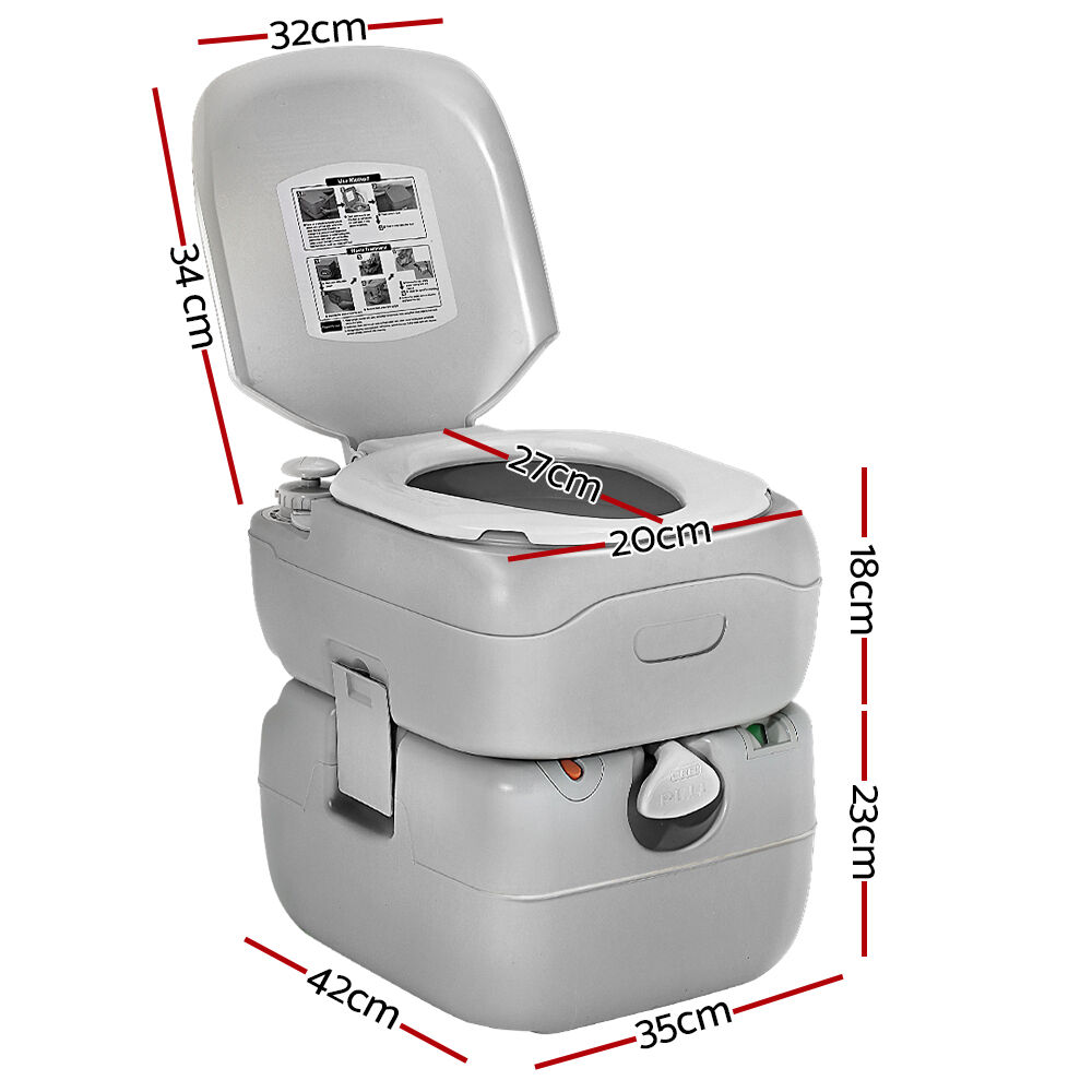$144.89For instant relief while camping, nothing beats having this Weisshon 22L Portable Camping Toilet around. It features a high quality construction and generous water reserves. In fact, 14 litres of freshwater capacity that is good for up to 80 flushes. And unlike others, its two-way flush is ultra strong and ensures total and complete flushing for a thoroughly cleaned toilet. The double-sealed drain valve also protects against leakages and odours. The high-density construction makes it strong and durable while both the water and waste holding tanks are of one-piece construction with heavy-duty and corrosion resistant side latches locking the tanks together. The portable toilet has an attractive matte finish and is scratch-resistant. Not least, the 22-litre holding tank is detachable for easy disposal of contents and cleaning. With no power or water source required, our portable toilet is just perfect for your camping, picnic, marine or road trip.