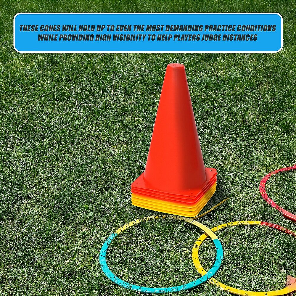 In bright colours with stable, square witch's hat' bases, these cones will hold up to even the most demanding practice conditions while providing high visibility to help players judge distances.