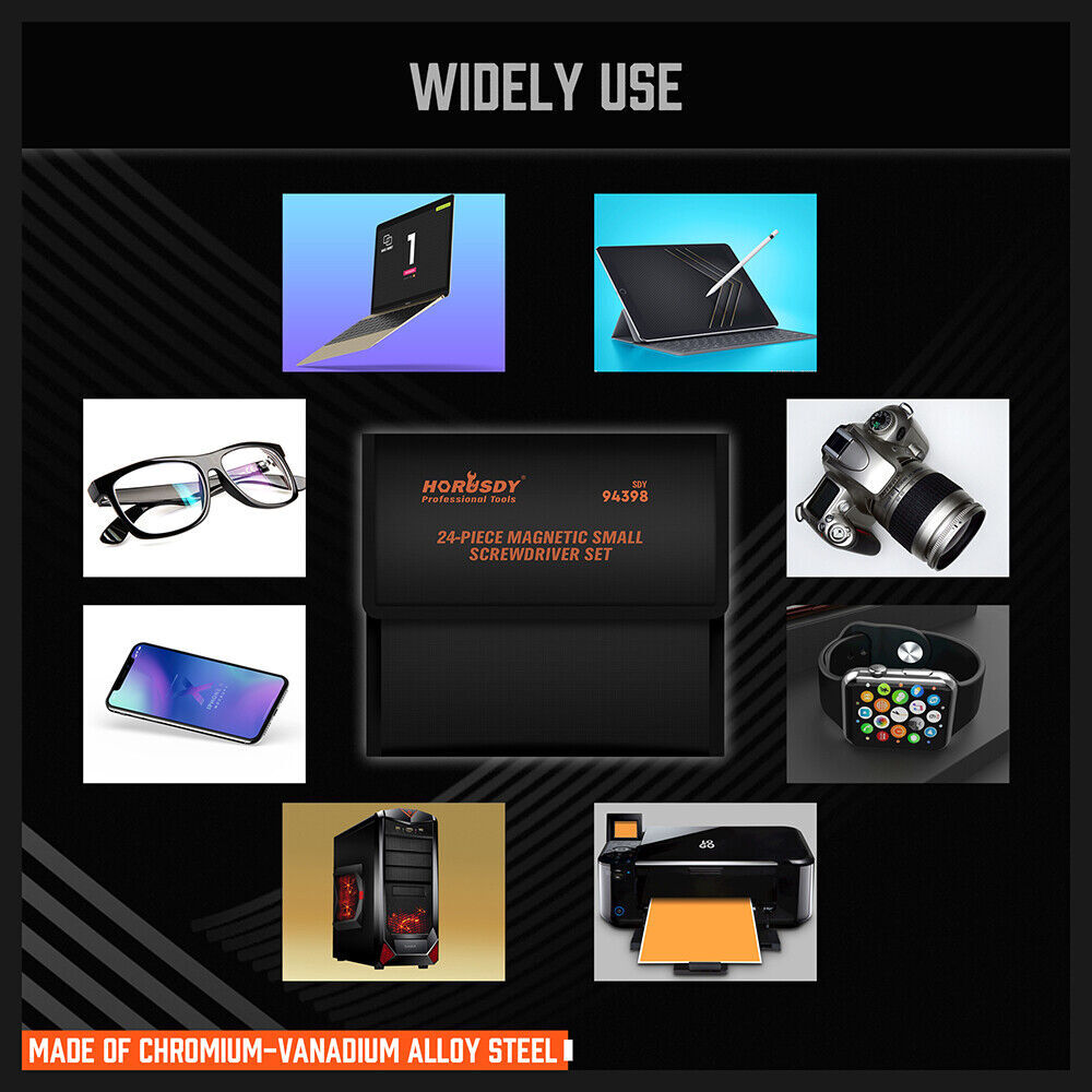 $25.19Experience the durability and precision of the HORUSDY 24-Piece Magnetic Precision Screwdriver Set. Crafted from high-strength chrome vanadium steel, these screwdrivers feature magnetized tips for secure screw handling. The set includes a variety of sizes for slotted, Phillips, and Torx screws, along with tweezers and a magnetizer. Each screwdriver is color-coded for easy recognition, and the ergonomic non-slip handle ensures comfortable and efficient work. With its compact storage bag, this set is ideal for electronics, watch repair, jewelry repair, and other projects that require delicate handling.