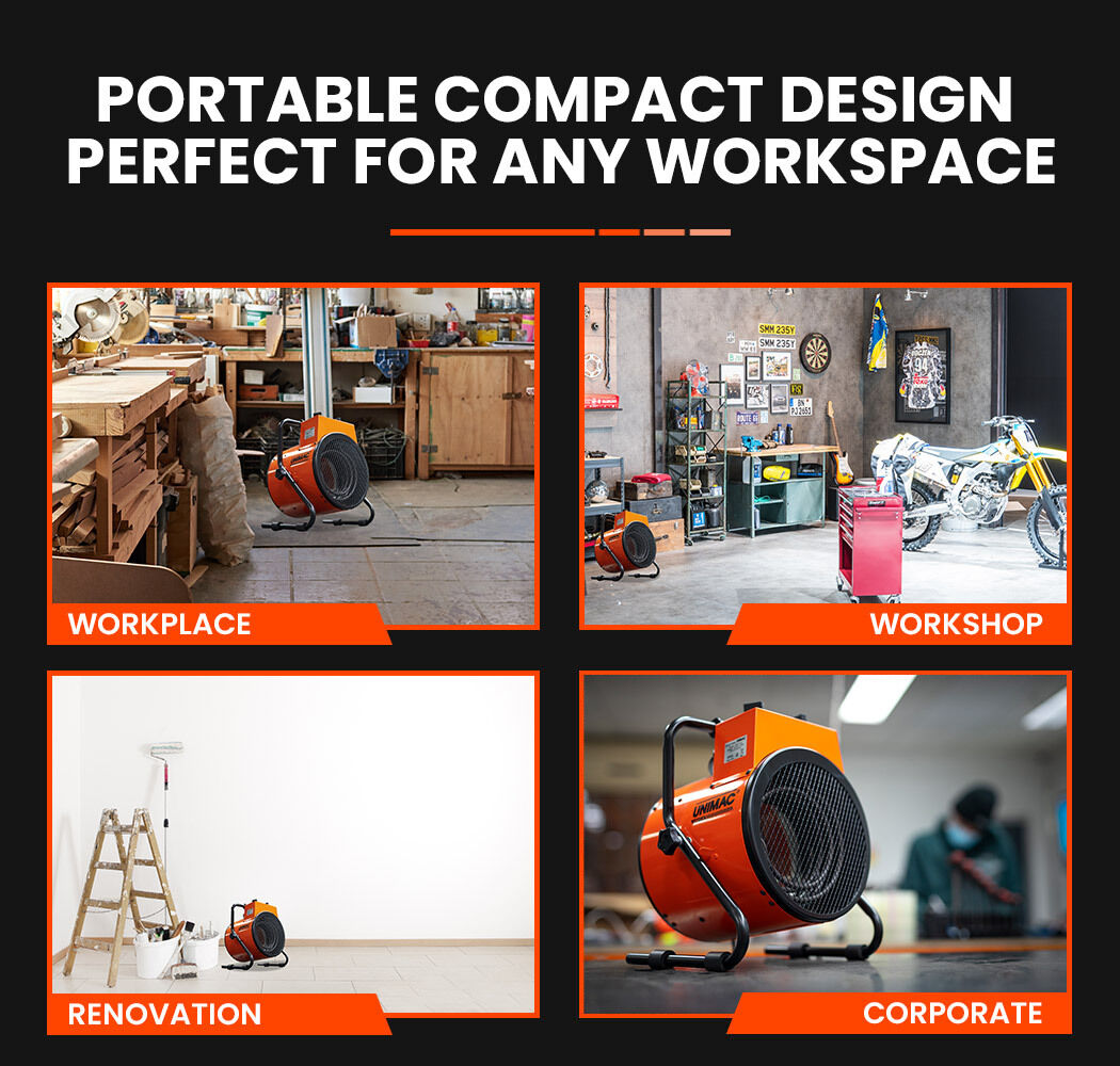 Warm up your workspace in no time. Order a UNIMAC 2400W Electric Industrial Space Heater today!