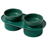 Ribbed Ceramic Double Pet Bowl 3pc Set - White