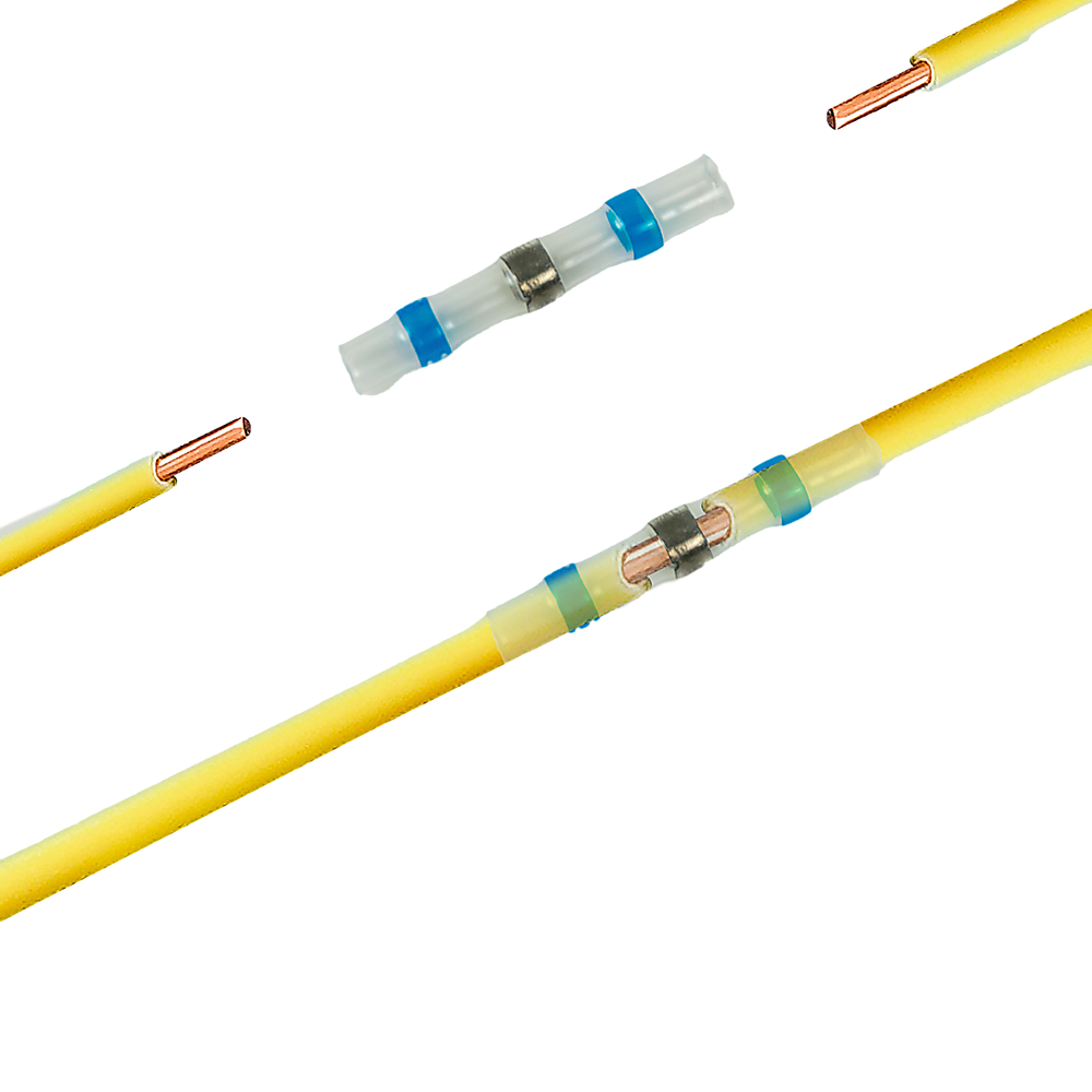Simply choose the right size connector for your wires, strip them, and then slip the connector over one of the ends. They're colour-coded by size, so there's no guesswork involved. Next, twist the wires together, position the metal ring into place over the area where the two wires meet, and then apply heat evenly around the connection. The connector will shrink, binding the two wires into a single, perfectly insulated connection. It's about as easy as you can get anyone can do it! With 250 pieces of varying sizes (colour allows you to choose the right size easily), you'll have everything you need for wiring in almost any project. Get yours today!