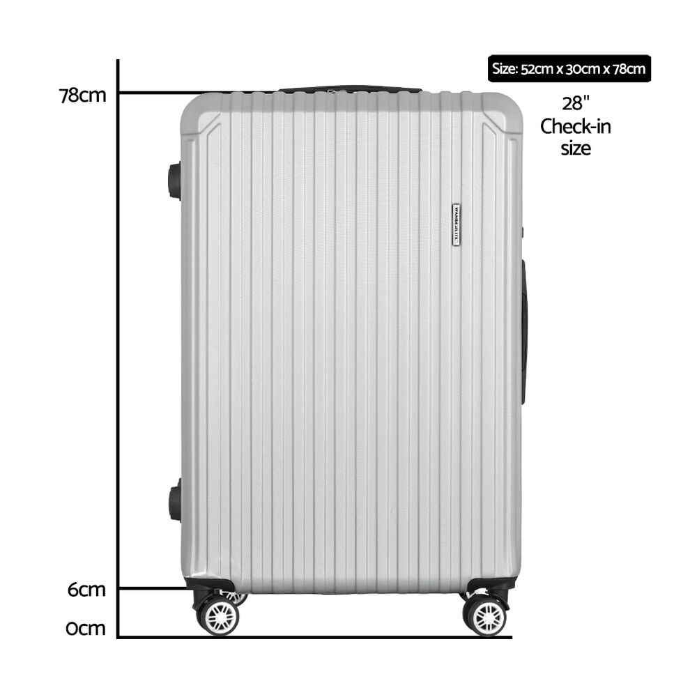 $82.79There are few things more important than keeping your luggage protected while travelling, whether from turbulence or nosy passengers. Our Wanderlite 28" Luggage is the perfect travelling companion for a stress-free holiday vacation or business trip. Featuring a durable 3-layer hard shell, smooth 360-degree dual wheels and secured TSA-approved locks, our luggage trolley set is easy to carry or manoeuvre around airports, train stations or any transport hub where getting there on time is as important as arriving with peace of mind. Super lightweight and yet strong and sturdy, the Wanderlite Luggage is constructed with an aluminium pull rod with three height levels, corner guard protectors and top and side handles that add to the effortless handling of each luggage. The polyester interior is water-resistant and features an inner mesh pocket and securing straps to keep everything in place. So start packing with our Wanderlite 28" luggage and begin your wanderlust today!