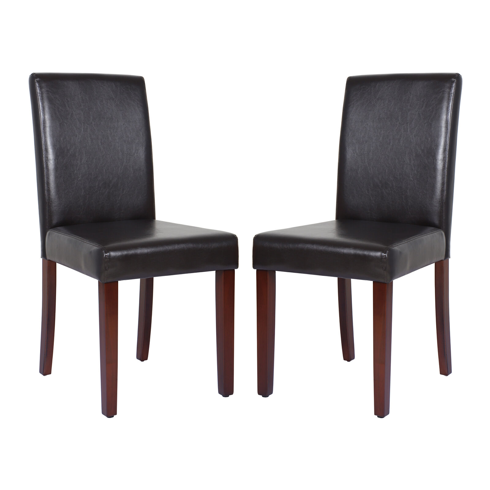 2x Wooden Frame Brown Leatherette Dining Chairs with Solid Pine Legs