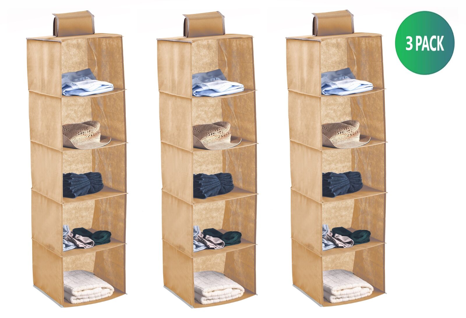 $32.393 Pack 5-Tier Shelf Hanging Closet Organizer and Storage for Clothes (Beige)