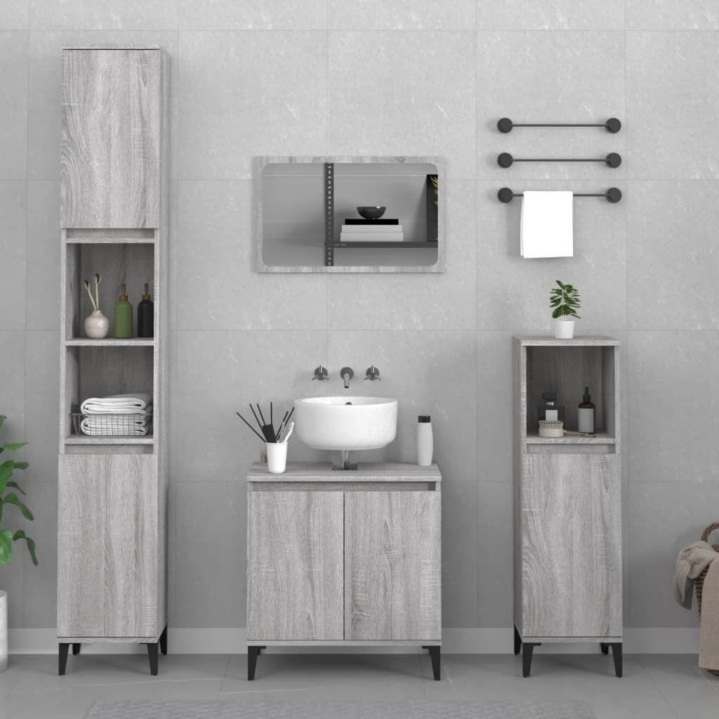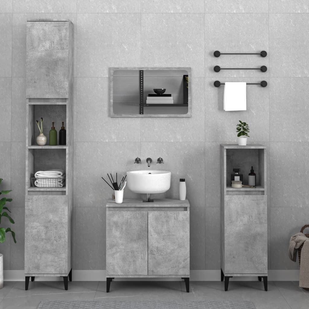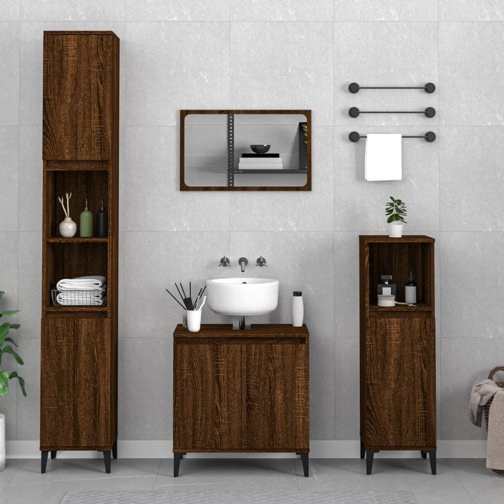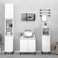$246.04This stylish bathroom furniture set, featuring spacious storage space, is an excellent addition to your bathroom, giving it a tidy and striking appearance! Durable material: The engineered wood is of exceptional quality with a smooth surface and features strength, stability and resistance to moisture.Ample storage space: These bathroom cabinets offer ample storage space for keeping your bathroom supplies well organised.Metal feet: The metal feet add a modern and calm style to your interior while ensuring stability.Easy-to-clean surface: The bathroom unit is easy to clean with a damp cloth.Stylish design: The clean lines and sleek design blend into your bathroom perfectly. Warning:To prevent it being overturned, this product must be used with the provided wall attachment device. Good to know:Screws and plugs for inside the wall are not included. We advise to find and use screws and plugs suitable specifically for your walls. If you're not sure, you can consult with a professional. Please read and follow each step of the instructions.