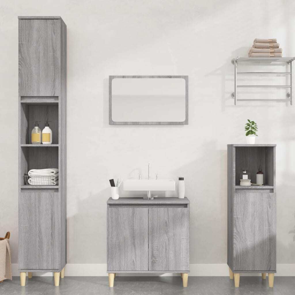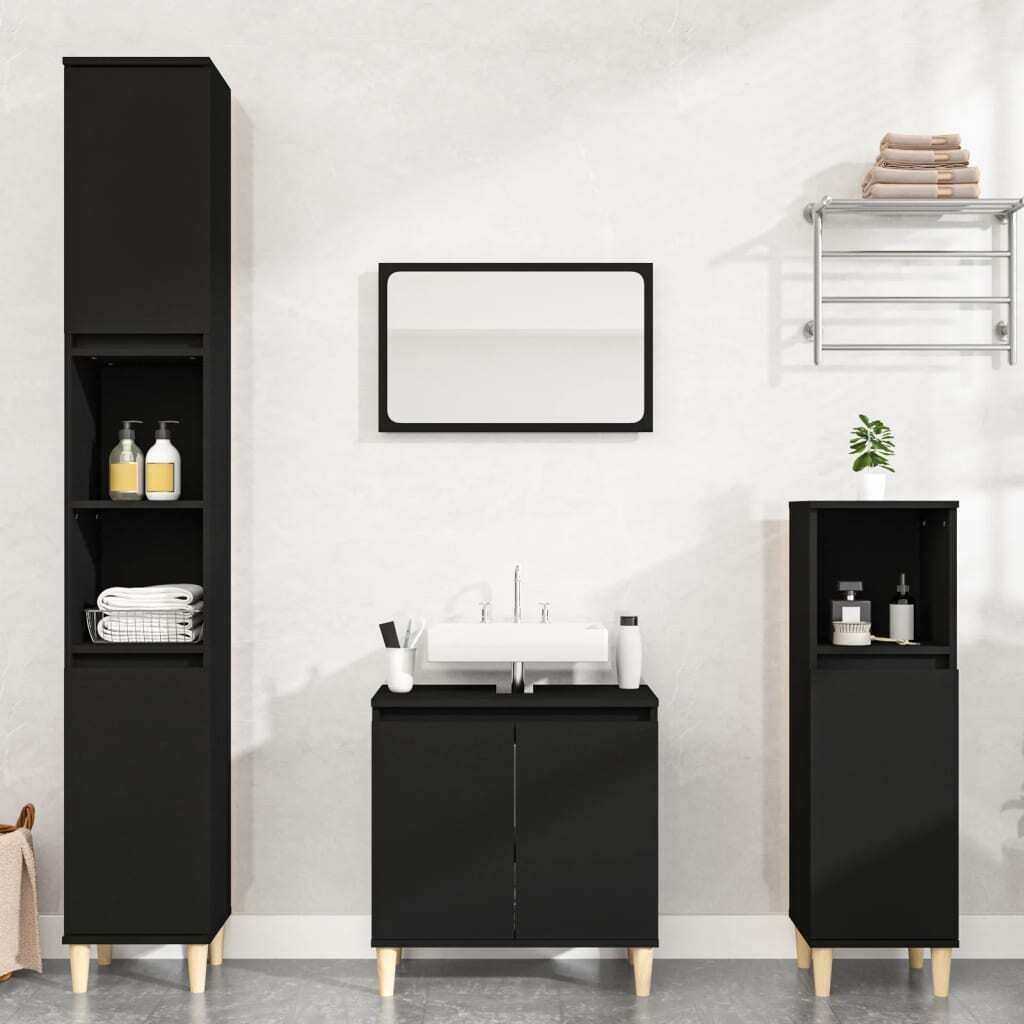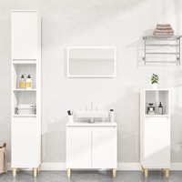 $232.74This stylish bathroom furniture set, featuring spacious storage space, is an excellent addition to your bathroom, giving it a tidy and striking appearance! Durable material: The engineered wood is of exceptional quality with a smooth surface and features strength, stability and resistance to moisture.Ample storage space: These bathroom cabinets offer ample storage space for keeping your bathroom supplies well organised.Wooden feet: The solid eucalyptus wood feet give the bathroom furniture a natural and pleasant look while ensuring stability.Easy-to-clean surface: The bathroom unit is easy to clean with a damp cloth.Stylish design: The clean lines and sleek design blend into your bathroom perfectly. Warning:To prevent it being overturned, this product must be used with the provided wall attachment device. Good to know:Screws and plugs for inside the wall are not included. We advise to find and use screws and plugs suitable specifically for your walls. If you're not sure, you can consult with a professional. Please read and follow each step of the instructions.