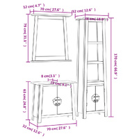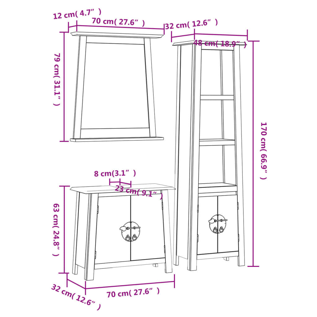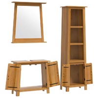 $519.29This bathroom furniture set is an excellent addition to your bathroom, giving it a tidy and striking appearance! Solid pine wood: Solid pine wood is a beautiful natural material. Pine wood has a straight grain, and the knots give the material its signature, rustic look.Ample storage space: The bath cabinet offers ample space to easily accommodate your essential toiletries and bath items such as soaps, shampoo, toothpaste, etc.Convenient handles: The metal handles allow you to open the bathroom storage cabinet easily to get what you want.Clear image: The mirror provides a fine and non-distorted reflection, so it is suitable for making up, shaving or checking the suit before going out. Warning:To prevent it from tipping over, this product must be used with the wall attachment device (not provided). Good to know:Each item is unique with variations in colours and grains. The delivery is random, ensuring the exclusivity and individuality of your product.