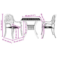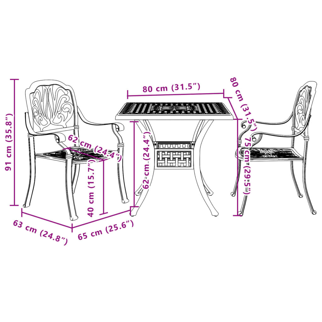 $689.39Enjoy a cup of coffee or have a chat with your family and friends in the garden, backyard, or on the balcony with this bistro set! Sturdy and durable frame: The garden bistro set, made of cast aluminium, is sturdy and durable enough to provide long-term service. The rust-resistant and weather-resistant material makes it ideal for outdoor use all year round.Comfortable seating experience: The high backrest and seat with a hollow design are comfortable and stylish. Ergonomically curved armrests can effectively relax your arms as well.Practical design: This garden table has an umbrella hole that can perfectly accommodate your umbrella to protect you from sun or rain.Wide applications: The bistro set is perfect for any front porch, patio, backyard, lawn, garden, etc. Good to know:To make sure your outdoor furniture stays beautiful, we recommend protecting it with a waterproof cover.
