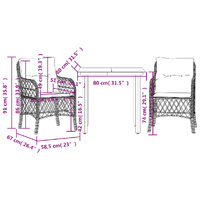 NOW $385.94Enjoy a coffee or have a chat with your family and friends in the garden, backyard, or on the balcony with this comfortable bistro set! Durable material: PE rattan, also known as poly rattan, is a strong, low-maintenance synthetic material that looks like natural rattan. It's lightweight, easy to clean, and commonly used for outdoor furniture due to its durability and weather-resistant properties.Comfortable seat experience: This outdoor furniture set, complete with thickly padded cushions, offers a comfortable seating experience.Removable and washable cover: These seat cushions feature removable covers for easy washing and maintenance.Glass tabletop: The outdoor table's top is made from strong and durable tempered glass, making it easy to clean with a damp cloth and adding a touch of elegance to your outdoor space. Good to know:To make sure your outdoor furniture stays beautiful, we recommend protecting it with a waterproof cover.
