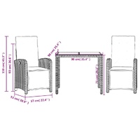 Enjoy a cup of coffee or have a chat with your family and friends in the garden, backyard, or on the balcony with this comfortable bistro set! Durable material: PE rattan, also known as poly rattan, is a strong, low-maintenance synthetic material that looks like natural rattan. It's lightweight, easy to clean, and commonly used for outdoor furniture due to its durability and weather-resistant properties.Adjustable backrest and footrest: This garden seat has a handle. You can adjust the backrest and footrest to any position by pulling the handle, and quickly return them to their original positions.Comfortable seat experience: This outdoor furniture, complete with thickly padded cushions, offers a comfortable seating experience.Removable and washable cover: These seat cushions feature removable covers for easy washing and maintenance. The back cushions have a flap at the back for easy attachment to the backrests.Glass tabletop: The outdoor table's top is made from strong and durable tempered glass, making it easy to clean with a damp cloth and adding a touch of elegance to your outdoor space. Good to know:To make sure your outdoor furniture stays beautiful, we recommend protecting it with a waterproof cover.
