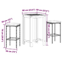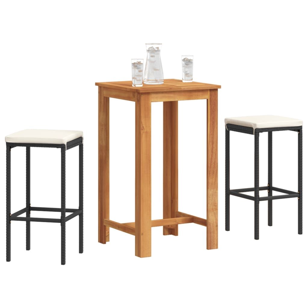 $207.34This garden bar set with an elegant and contemporary design will be a great choice for dining or relaxing in the garden. Durable material: PE rattan, also known as poly rattan, is a strong, low-maintenance synthetic material that looks like natural rattan. It's lightweight, easy to clean, and commonly used for outdoor furniture due to its durability and weather-resistant properties. Made of lightweight PE rattan, these bar stools are sturdy and easy to move. Sturdy tabletop: Solid acacia wood is a beautiful natural material. Acacia wood is a tropical hardwood, which is dense, sturdy, and durable. Made of solid acacia wood, this bar table is sturdy and stable. You can place your snacks, drinks and any of your favourite decorations. Comfortable seating experience: The thickly padded seat cushions and the built-in footrests add additional seating comfort for the stool. Removable and washable cover: These seat cushions feature removable covers for easy washing and maintenance. Good to know:To make sure your outdoor furniture stays beautiful, we recommend protecting it with a waterproof cover.