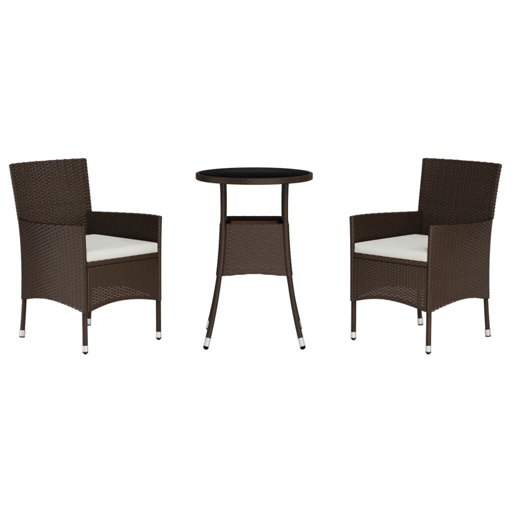 This stylish garden bistro set provides you with a leisurely and comfortable time with your family and friends. Durable material: PE rattan, also known as poly rattan, is weather resistant and easy to clean. It remains beautiful on the outside for a long period of time. It offers great quality, convenience and an aesthetic look. Sturdy and stable frame: The powder-coated steel frame of the garden furniture set ensures sturdiness and stability. Comfortable seat experience: Designed with backrests and armrests, these garden bistro chairs provide maximum comfort. The thickly padded cushions of the bistro chairs also provide extra comfort while sitting. Sturdy tabletop: The sturdy tabletop of the bistro table is perfect for placing coffee, drinks, vases, fruit bowls, or other decorative items. Note:To make sure your outdoor furniture stays beautiful, we recommend protecting it with a waterproof cover.