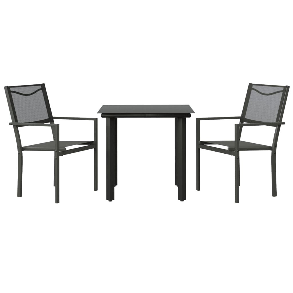 $203.66Enjoy a nice meal or afternoon tea in your outdoor space with this garden dining set! Featuring an elegant design, it will become the focal point of your garden and patio! Stable frame: The armchairs and table have a powder-coated steel construction, making them sturdy and stable.Durable material: Thanks to the strong textilene fabric, these outdoor chairs are weather-resistant and easy to clean.Sturdy tabletop: The tabletop is made of tempered glass, making it easy to clean. Additionally, the tabletop is perfect for placing snacks, drinks, vases, fruit bowls, or other decorative items.Comfortable seating experience: The ergonomic backrest and armrests give you a better seating experience. Good to know:To make sure your outdoor furniture stays beautiful, we recommend protecting it with a waterproof cover.
