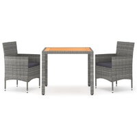 $365.48This stylish garden dining set provides you with a leisurely and comfortable time with your family and friends. Featuring a powder-coated steel frame covered with weather-resistant PE rattan with UV protection, the table and chairs are durable and stable. Designed with curved backrest and armrest, the chairs provide you with comfort. The cushions are included for added comfort and the zipped cover is removable for easy washing. The tabletop is made of solid acacia wood in strong support, which is easy to clean and maintain. Additionally, the lightweight construction makes each piece easy to move, rearrange and transport. Note: In order to extend the life of your outdoor furniture, we recommend you to clean it regularly and do not leave it outdoors without protection unnecessarily.Clean: Use a mild soap solution.Storing: If possible, store in a cool, dry place indoors. If the product is stored outdoors, protect it with a waterproof cover. Wipe and dry the excess water or snow from flat surfaces after a rain or snowfall. Allow sufficient air circulation to avoid moisture-related damage.