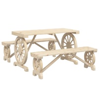 $345.95Enjoy a nice meal or afternoon tea in your outdoor space with this wooden garden dining set! Solid fir wood: Solid fir wood is a beautiful and durable material that maintains its integrity even when exposed to moisture. It does not dry out or warp, making it a reliable choice.Practical table: The garden table is perfect for placing your drinks, food and other decorative items.Attractive design: The outdoor dining set features a wagon wheel design that offers an eye-catching display from every angle. Good to know:To make sure your outdoor furniture stays beautiful, we recommend protecting it with a waterproof cover.