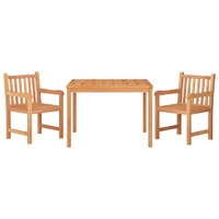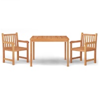 $775.61This wooden garden dining set, with an elegant and contemporary design, is a great choice for dining or relaxing in the garden. Solid teak wood: Solid teak wood is a beautiful natural material. It has been seasoned, kiln dried and then fine sanded to give a very smooth appearance. Teak wood is known for its exceptional strength and weather resistance.Sturdy tabletop: This dinner table provides you with a sturdy tabletop. You can place your snacks, drinks, and any of your favourite decorations.Water-resistant feature: With its water-resistant feature and classic look, you can place the garden furniture set anywhere around your sweet home, whether indoors or outdoors!Comfortable seating experience: Each dinner chair has a backrest, which makes it highly comfortable to sit on. Note:Each product comes with an assembly manual in the box for easy assembly.In order to extend the life of your outdoor furniture, we recommend you to protect it with a waterproof cover.