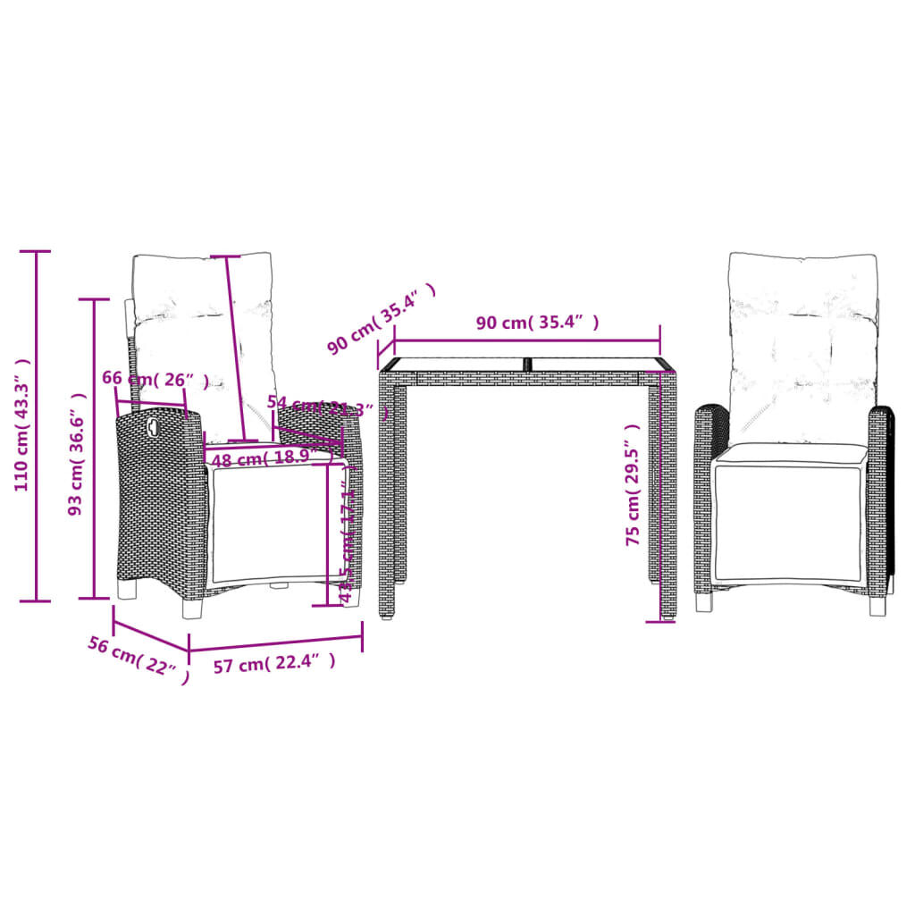 $474.29This garden dining set is a great choice for al fresco dining or just relaxing in the garden, backyard, or patio. Durable material: PE rattan, also known as poly rattan, is a strong, low-maintenance synthetic material that looks like natural rattan. It's lightweight, easy to clean, and commonly used for outdoor furniture due to its durability and weather-resistant properties.Adjustable backrest and footrest: This garden seat has a handle. You can adjust the backrest and footrest to any position by pulling the handle, and quickly return them to their original positions.Stable and easy-to-clean tabletop: This garden table has an acacia wood top that is sturdy, durable, and easy to clean with a damp cloth.Comfortable seat experience: This outdoor furniture, complete with thickly padded cushions, offers a comfortable seating experience.Removable and washable cover: These seat cushions feature removable covers for easy washing and maintenance. Good to know:To make sure your outdoor furniture stays beautiful, we recommend protecting it with a waterproof cover.