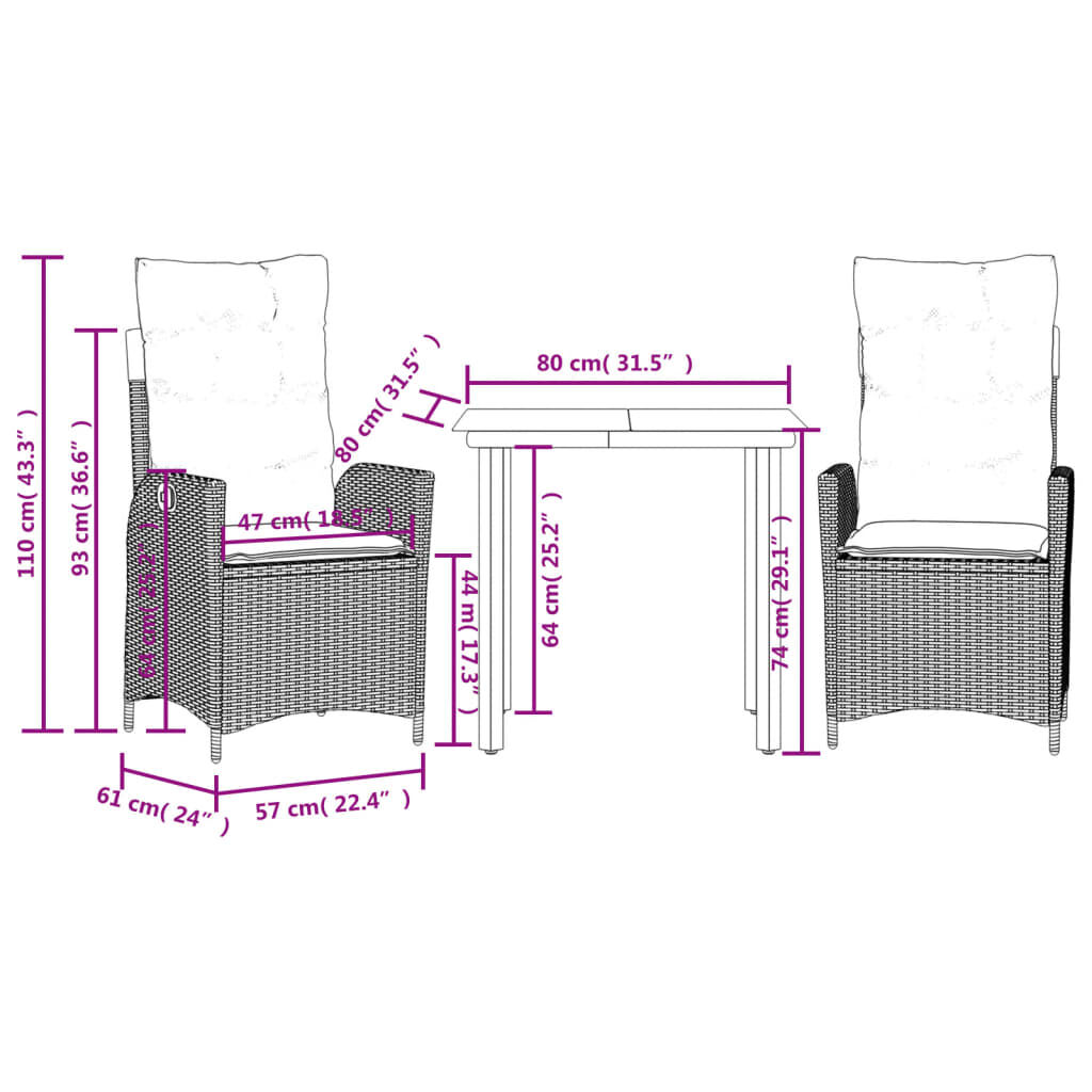 $402.68This garden dining set is a great choice for al fresco dining or just relaxing in the garden, backyard, or on the patio. Durable material: PE rattan, also known as poly rattan, is a strong, low-maintenance synthetic material that looks like natural rattan. It's lightweight, easy to clean, and commonly used for outdoor furniture due to its durability and weather-resistant properties.Adjustable backrest: This garden seat has a handle. You can adjust the backrest to any position by pulling the handle, and quickly return it to its original position.Comfortable seat experience: This outdoor furniture, complete with thickly padded cushions, offers a comfortable seating experience.Removable and washable cover: These seat cushions feature removable covers for easy washing and maintenance. The back cushions have a flap at the back for easy attachment to the backrests.Glass tabletop: The outdoor table's top is made from strong and durable tempered glass, making it easy to clean with a damp cloth and adding a touch of elegance to your outdoor space. Good to know: To make sure your outdoor furniture stays beautiful, we recommend protecting it with a waterproof cover.