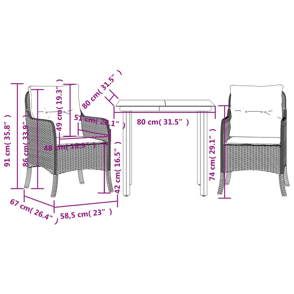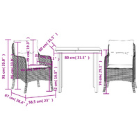 $462.20This garden dining set is a great choice for al fresco dining or just relaxing in the garden, backyard, or patio. Durable material: PE rattan, also known as poly rattan, is a strong, low-maintenance synthetic material that looks like natural rattan. It's lightweight, easy to clean, and commonly used for outdoor furniture due to its durability and weather-resistant properties.Comfortable seat experience: This outdoor furniture, complete with thickly padded cushions, offers a comfortable seating experience.Removable and washable cover: These seat cushions feature removable covers for easy washing and maintenance.Glass tabletop: The outdoor table's top is made from strong and durable tempered glass, making it easy to clean with a damp cloth and adding a touch of elegance to your outdoor space.Robust and stable frame: The powder-coated steel frame ensures that the garden furniture is strong and stable for daily outdoor use. Good to know:To make sure your outdoor furniture stays beautiful, we recommend protecting it with a waterproof cover.