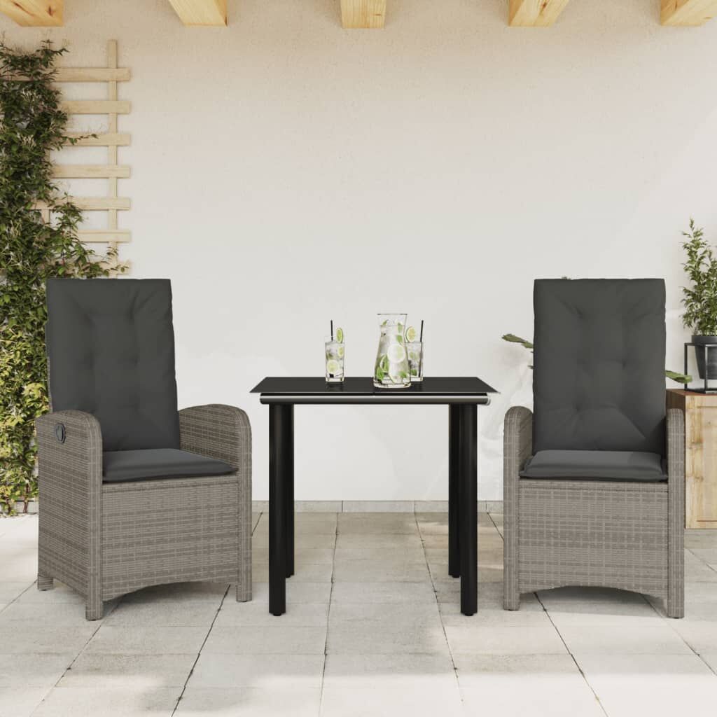 $401.75This garden dining set is a great choice for al fresco dining or just relaxing in the garden, backyard, or on the patio. Durable material: PE rattan, also known as poly rattan, is a strong, low-maintenance synthetic material that looks like natural rattan. It's lightweight, easy to clean, and commonly used for outdoor furniture due to its durability and weather-resistant properties.Adjustable backrest: This garden seat has a handle. You can adjust the backrest to any position by pulling the handle, and quickly return it to its original position.Comfortable seat experience: This outdoor furniture, complete with thickly padded cushions, offers a comfortable seating experience.Removable and washable cover: These seat cushions feature removable covers for easy washing and maintenance. The back cushions have a flap at the back for easy attachment to the backrests.Glass tabletop: The outdoor table's top is made from strong and durable tempered glass, making it easy to clean with a damp cloth and adding a touch of elegance to your outdoor space. Good to know:To make sure your outdoor furniture stays beautiful, we recommend protecting it with a waterproof cover.