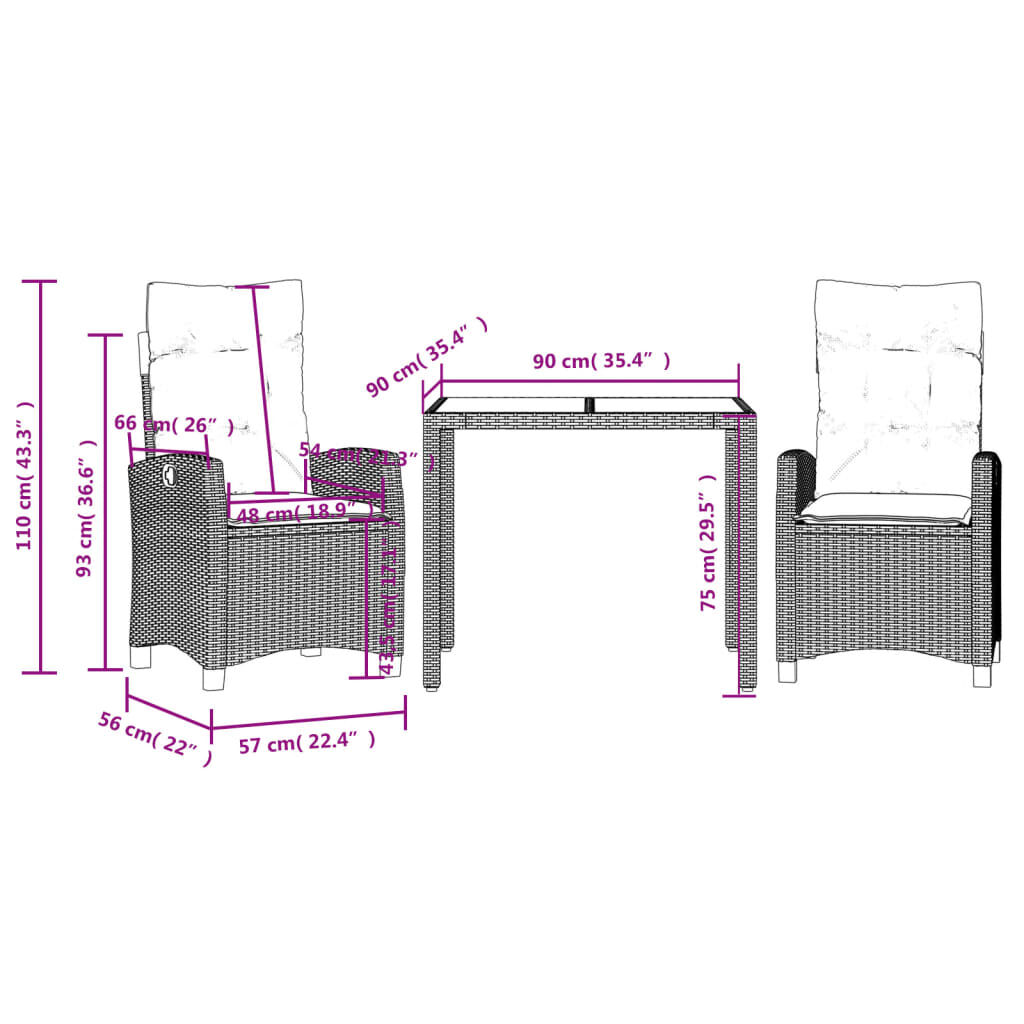 $444.59This garden dining set is a great choice for al fresco dining or just relaxing in the garden, backyard, or patio. Durable material: PE rattan, also known as poly rattan, is a strong, low-maintenance synthetic material that looks like natural rattan. It's lightweight, easy to clean, and commonly used for outdoor furniture due to its durability and weather-resistant properties. Adjustable backrest: This garden seat has a handle. You can adjust the backrest to any position by pulling the handle, and quickly return it to its original position.Stable and easy-to-clean tabletop: This garden table has an acacia wood top that is sturdy, durable, and easy to clean with a damp cloth. Comfortable seat experience: This outdoor furniture, complete with thickly padded cushions, offers a comfortable seating experience. Removable and washable cover: These seat cushions feature removable covers for easy washing and maintenance. Good to know:To make sure your outdoor furniture stays beautiful, we recommend protecting it with a waterproof cover.