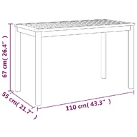 This garden dining set with cushions makes a great addition to your garden, terrace or patio. Durable material: Solid acacia wood is a beautiful natural material. Acacia wood is a tropical hardwood, which is dense, sturdy, and durable.Sturdy frame: The wooden frame of the outdoor dining set ensures sturdiness and stability.Soft cushion: The thickly padded seat cushions of the outdoor stool provide the utmost comfort.Stable tabletop: The stable tabletop of the dining table offers you space to put some snacks, fruit baskets, decorative items, as well as various other essentials. Note:Each product comes with an assembly manual in the box for easy assembly.In order to extend the life of your outdoor furniture, we recommend you to protect it with a waterproof cover.The table is lower than usual dining tables, and it's especially suitable to combine with garden sofa sets.
