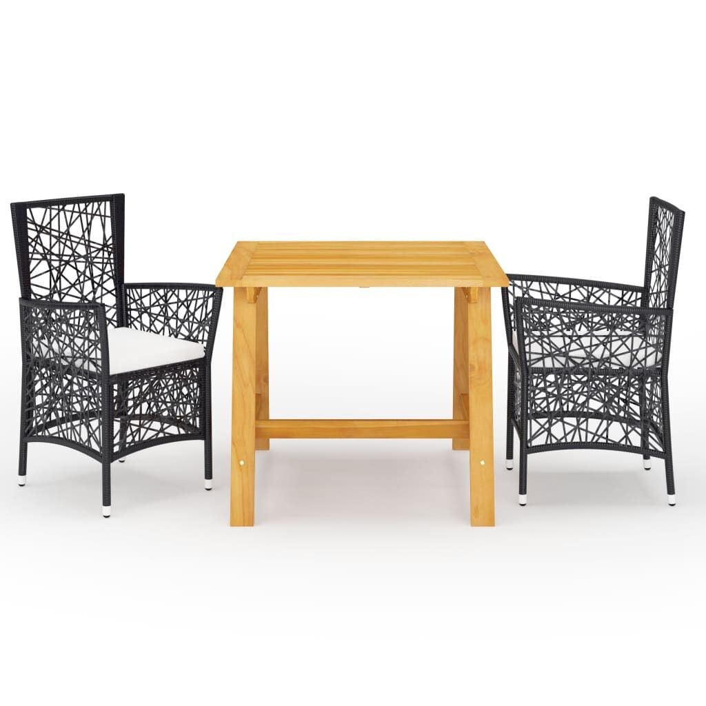 $317.65Create a compelling and cohesive aesthetic in your outdoor space with this garden dining set! The dinner table is made of solid acacia wood with an oil finish, which makes it stable, durable and easy to maintain. Featuring a powder-coated steel frame covered with weather-resistant PE rattan, these dining chairs are sturdy and easy to clean. Each seat comes with a removable thickly padded cushion for adding comfort in your lounging time. Important note: We recommend covering the dining set during rain, snow and frost for its best service to last.