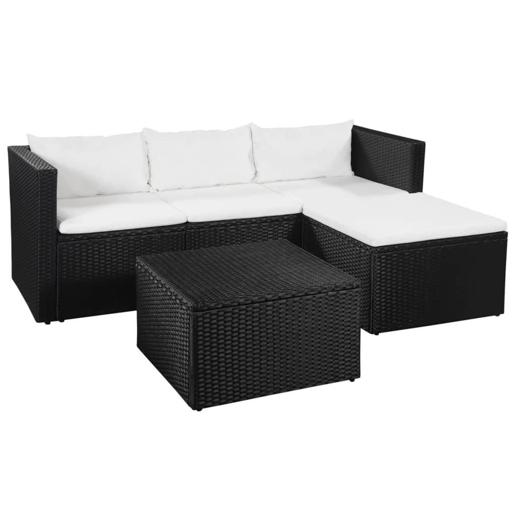 $391.49This poly rattan sofa set, consisting of 1 three-seater sofa, 1 coffee table, 1 ottoman, 3 back pillows and 4 seat cushions, will offer a stylish seating area for your garden or patio.