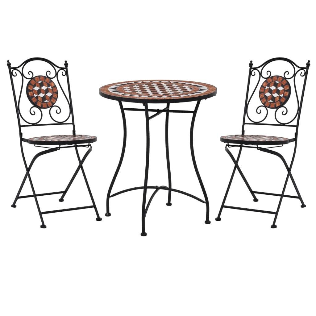$304.19Add a romantic touch to your garden, patio, or balcony with this mosaic bistro set. It will be a great pleasure to chat with your friends or have a cuppa while relaxing on this decorative yet functional garden furniture set. Thanks to its strong powder-coated iron frame and ceramic tiles, our table and chairs are sturdy, durable, and easy to clean. Delivery includes 1 table and 2 chairs. Please note this set is not suitable to be left outside in cold condition.