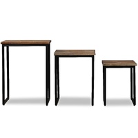 $226.91This cool, industrial coffee table set will make a timeless accessory for your home. The tables' solid wood tops provide a stable and secure surface on which you can place your drinks, vases, fruit bowls or ornaments. They can also be used as side tables or bedside tables. This coffee table set is made of reclaimed teak, which means that every piece of furniture is unique and slightly different from the next. Reclaimed teak is solid, stable, durable and beautiful. The strong steel legs make the nesting tables very sturdy and durable and add to their spectacular industrial style. Delivery includes 3 coffee tables in different sizes. Assembly is easy. Important note: Colours vary from piece to piece, making each of our coffee tables unique. The delivery is random, ensuring the exclusivity and individuality of your product.