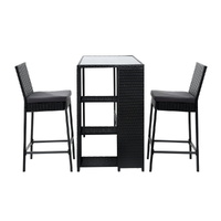 NOW $288.25Looking to create a chic and gorgeous outdoor bar setting? The Gardeon 3-piece handwoven wicker outdoor bar table and stool set is a must purchase. It will liven up your outdoor space and help you achieve an elegant outdoor bar setting where you can enjoy day and night and summer and winter with your clan. The set comprises of two chairs and a matching table with storage shelves. Its beautiful and versatile design makes it perfect for any space. This outdoor set features a lovely wicker weave for a touch of tropical charm, and the PE wicker with heavy-duty, powder-coated steel frame is suitable for all-season use. The thick tempered glass tabletop boasting solid structure and classy design ensures strength, durability, and timeless look, and the chairs have been thoughtfully designed with thick foam and built-in footrest for comfort and convenience. This wicker outdoor bar table and stool set will withstand the test of time. Furthermore, the chairs come with removable cushions and cushion covers that can be removed to suit different seasons and keep clean. Now create a praise-worthy spot with just a little creativity that will wow your guests using our Gardeon wicker outdoor dining set.