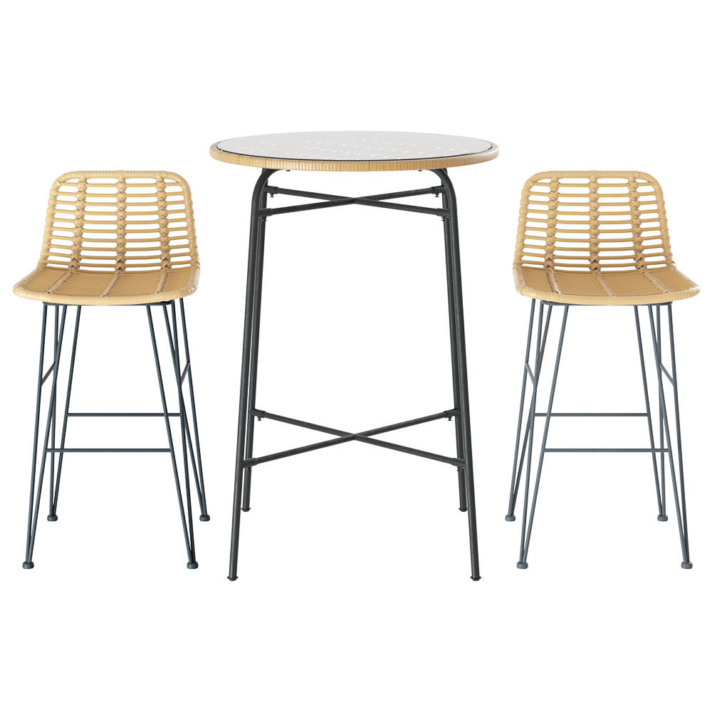 $201.80Get outdoors just in time for summer with the Gardeon 3-piece Bar Setting. Featuring 2 stylish wicker chairs and a matching coffee table, there's plenty of space for the perfect afternoon tea. The set is easy to assemble, and you can easily configure the seating into your perfect outdoor set-up. Each piece features a solid powder-coated steel frame covered by handwoven wicker that is UV and weather resistant. The slightly slanted backrest and built-in footstool provide comfort and support throughout your events. Each piece has adjustable feet for the perfect height setting. The tempered glass coffee table is elegant and sturdy, with plenty of room to hold your outdoor essentials. Maintenance is as easy as wiping down the furniture. So what are you waiting for? Make the most out of the beautiful weather with a Gardeon 3-piece Bar Setting.