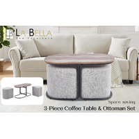 $176.69La Bella 3 Piece Set Coffee Table & Ottoman Wood Side End Table Industrial Rustic - Cream Grey